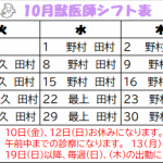 勤務に変更が生じることがありますので、お気軽にお問い合わせください☏ - 2025年10月 獣医師勤務表🎃