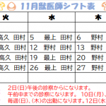 10月の獣医師勤務表になります。 19日(日)以降、野村先生の診察は、日曜日、木曜日のみになります。 22日(水)から、野村先生に変わり、水曜日、土曜日は、 … - 🍁秋の健康診断キャンペーン🍁